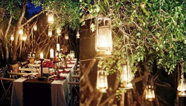 We're having an evening wedding outside, in my parents' wooded garden. I imagine creative lighting with mis-matching lanterns for a fun, romantic feel...